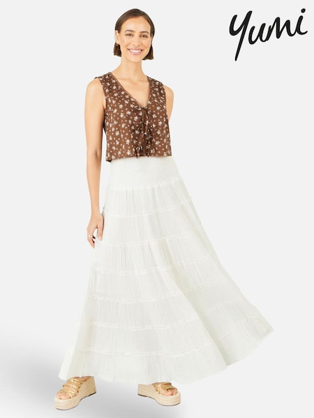 Yumi White Boho Print Cotton Floral Maxi Skirt