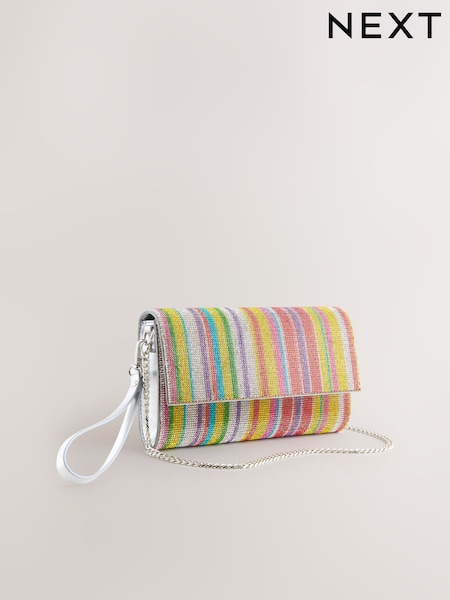 Rainbow Stripe Sparkle Clutch Bag