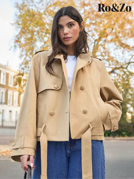 Ro&Zo Brown Belted Cropped Trench Jacket