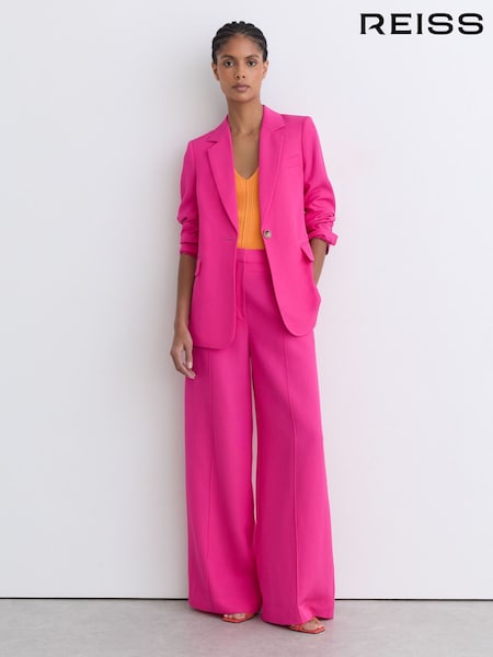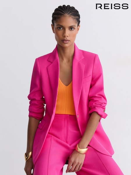 Reiss Pink Charli Petite Single-Breasted Suit Blazer with Linen