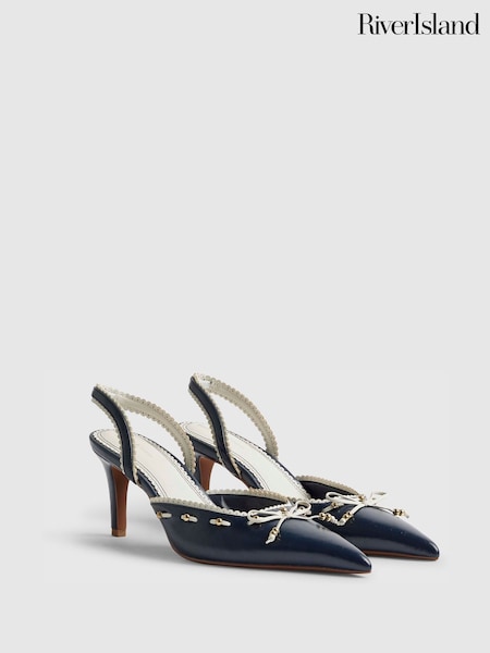 Linzi Blue Elvira Kitten Heel Slingback Courts