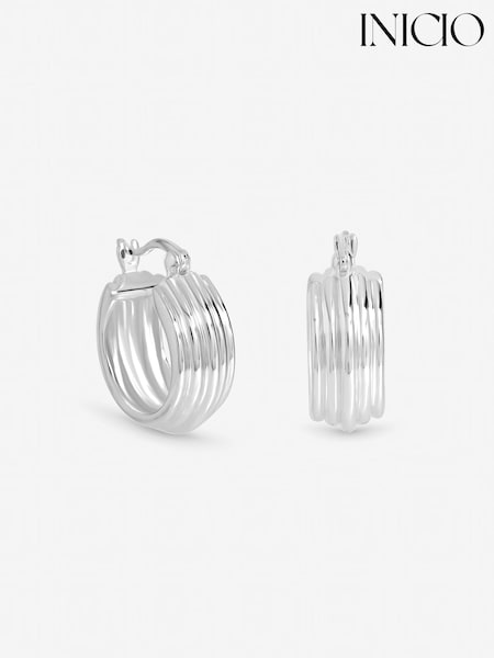 Inicio Sterling Silver Plated Ridged Hoop Earrings