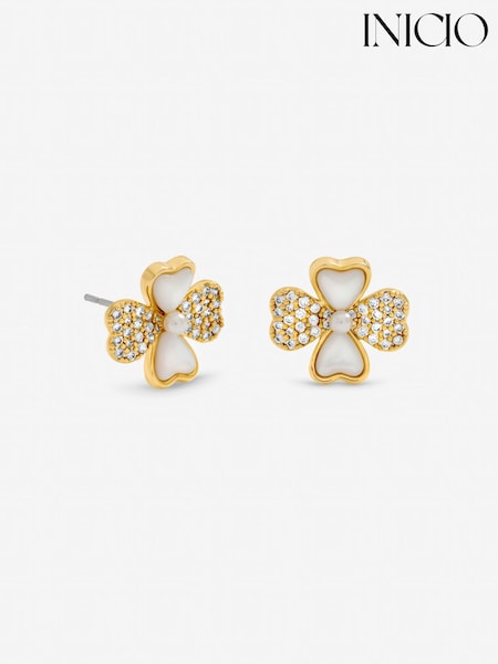 Inicio Gold Tone Mother of Pearl and Pave Clover Stud Earrings