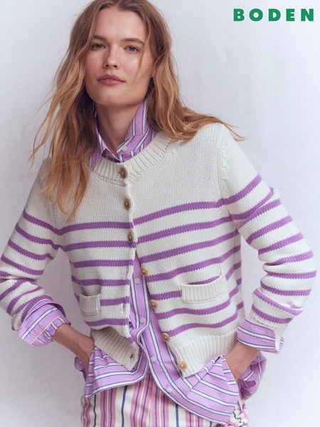 Boden Blue Lucy Relaxed Cotton Cardigan