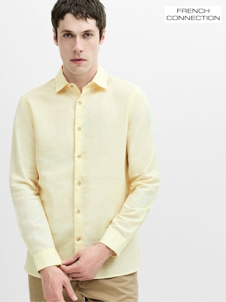French Connection Yellow Cotton Linen Blend Button Long Sleeve Shirt