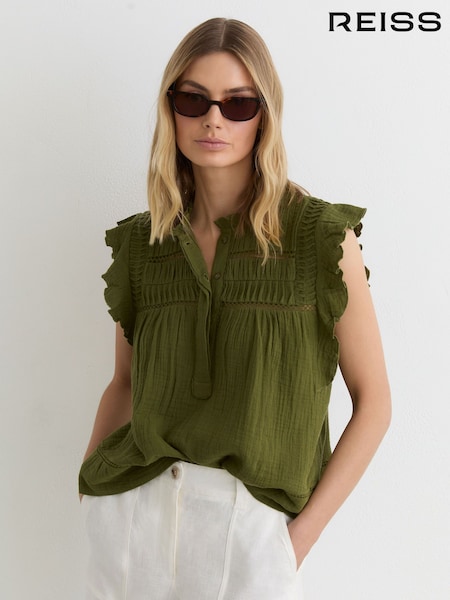Reiss Olive Green Florie Cotton Cheesecloth Sleeveless Top
