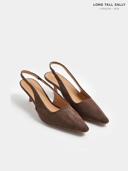 Tommy Hilfiger Brown Croco-Print Slingback Kitten Heels With Leather