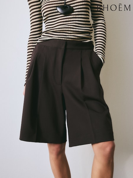 BHOEM Pleated Tailored Chocolate Brown Bermuda Shorts