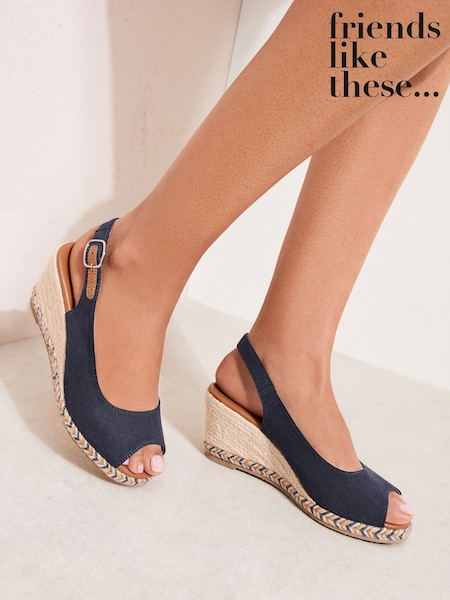 Friends Like These Navy Blue Canvas Standard Fit Slingback Peep Toe Espadrille Wedge Sandals