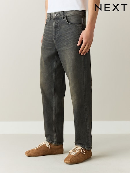 Grey Tint Relaxed Tapered Fit Authentic Stretch Denim Jeans