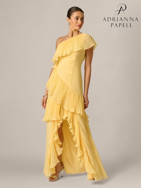 Adrianna Papell Yellow Poly Chiffon Long Dress