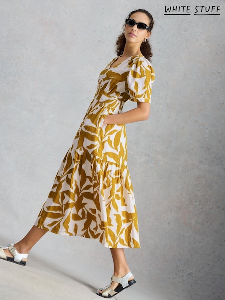 White Stuff Yellow Petra Linen Blend Dress