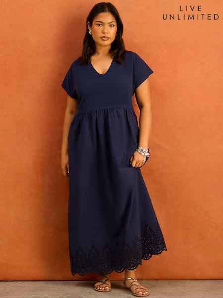 Live Unlimited Blue Jersey Woven Mix Broderie Maxi Dress