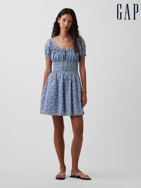 Floral bleu - Gap robe courte à taille smockée