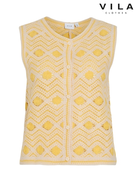 VILA O-Neck Patterned Sleeveless Crochet Vest
