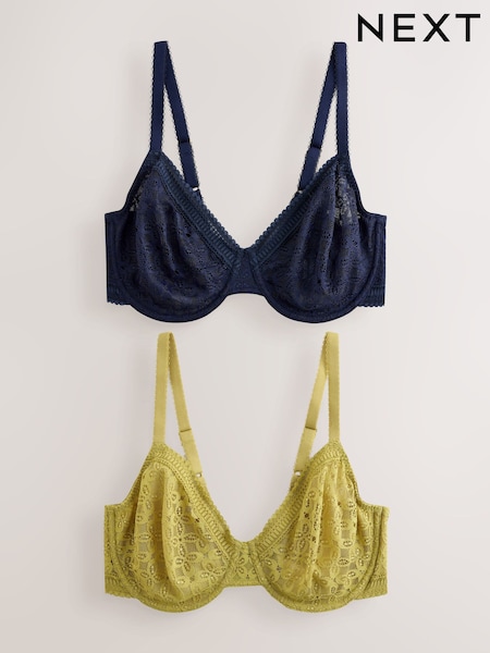 Marine/Vert - Lot de 2 soutiens-gorge DD+ en dentelle non rembourrés bonnets complets