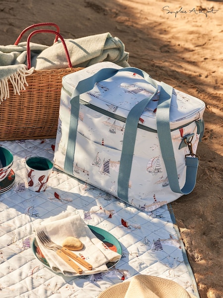 Sophie Allport Pale Blue Coastal Boats Picnic Bag