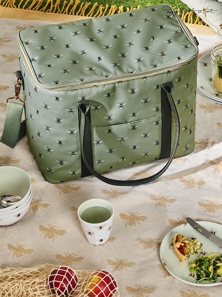 Sophie Allport Pale Green Bees Tall Pocket Picnic Bag