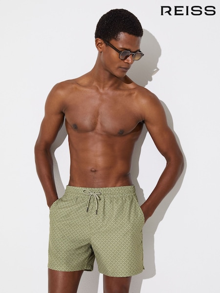 Reiss Sage Green Orient Geometric-Print Swim Shorts