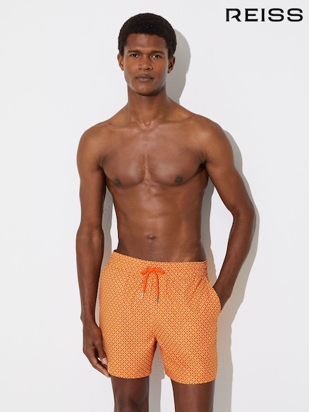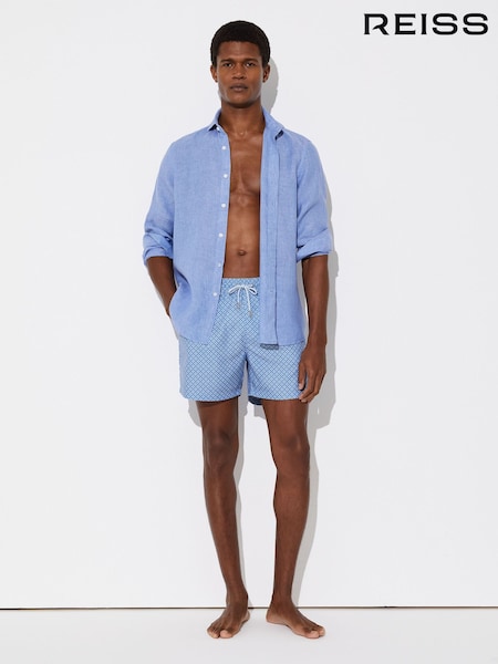 Reiss Blue Orient Geometric-Print Swim Shorts