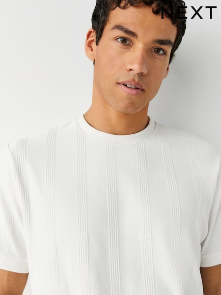 Ecru Slim Fit Smart Textured T-Shirt