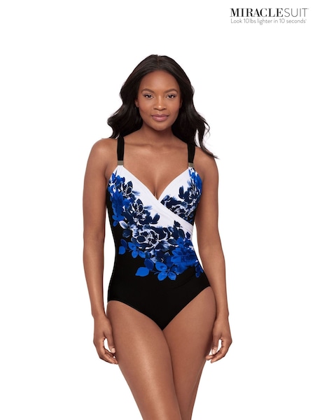 Miraclesuit Black Underwired Printed Foam Cupped Tummy Control Swimsuit