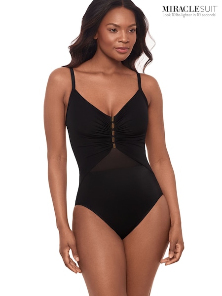 Miraclesuit Black Underwired Mesh Insert & Hardware Detail Fronted Tummy Control Swimsuit
