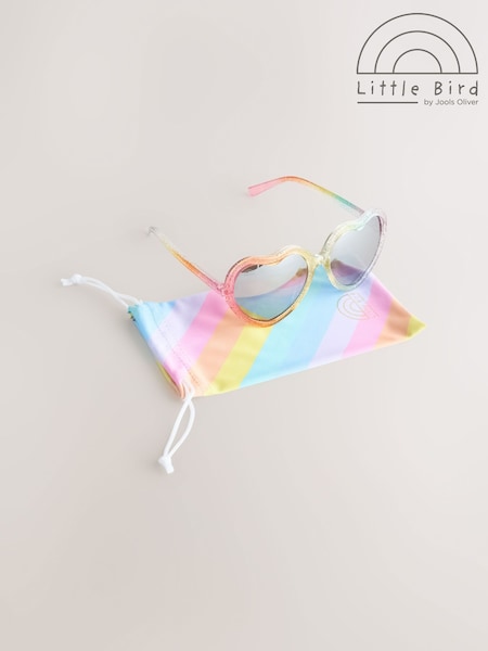 Little Bird by Jools Oliver-ის პასტელის ცისარტყელას ფორმის ბრჭყვიალა გულის ფორმის მზის სათვალე