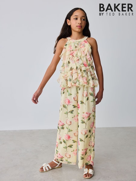 ლიმონის ყვითელი - Baker by Ted Baker Mesh Waterfall Halter Wide Leg Jumpsuit