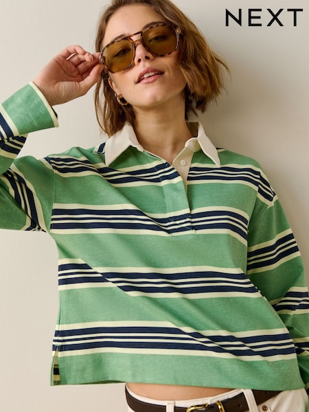 ლურჯი ზოლიანი - Long Sleeve Collared Rugby Polo Top