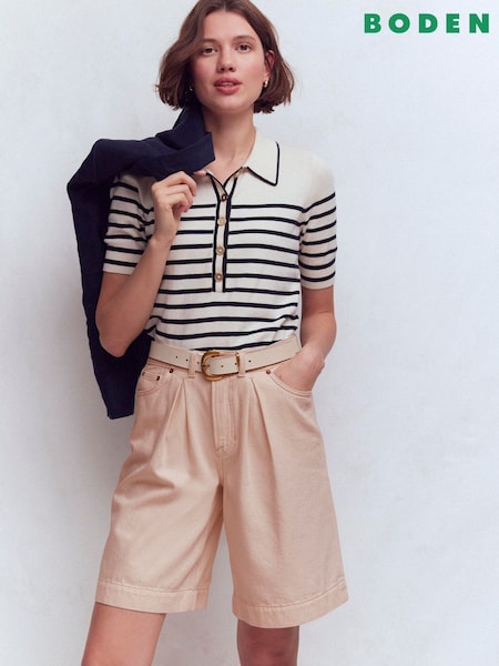 Boden Cream Denim Bermuda Shorts
