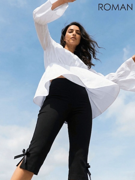 Roman Black Bow Bengaline Capri Trousers