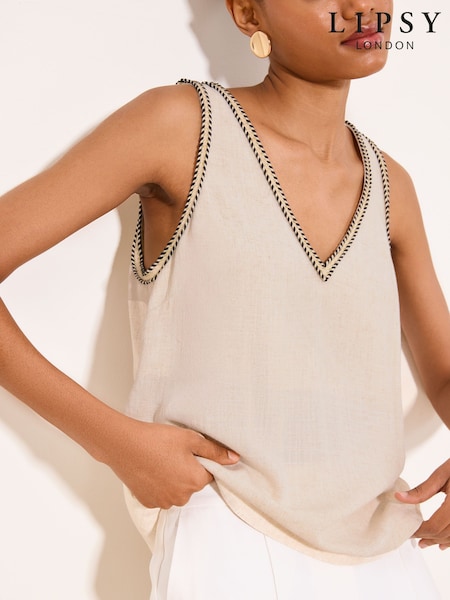 Lipsy Neutral Touch of Linen Trim Detail Vest
