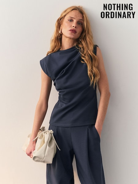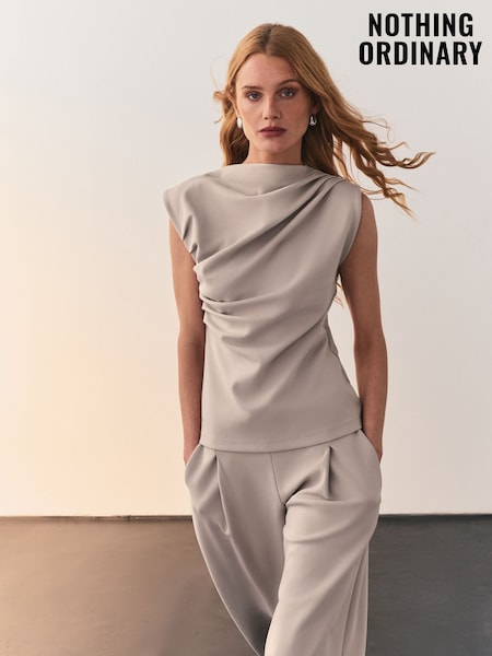 Μπεζ - Nothing Ordinary Luxe Jersey Ruched Αμάνικη μπλούζα