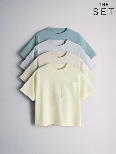 Καφέ/Κόκκινο/Ροζ/Κρεμ - The Set 4 Πακέτο με κοντομάνικα μπλουζάκια με τσέπες από Cotton Blend