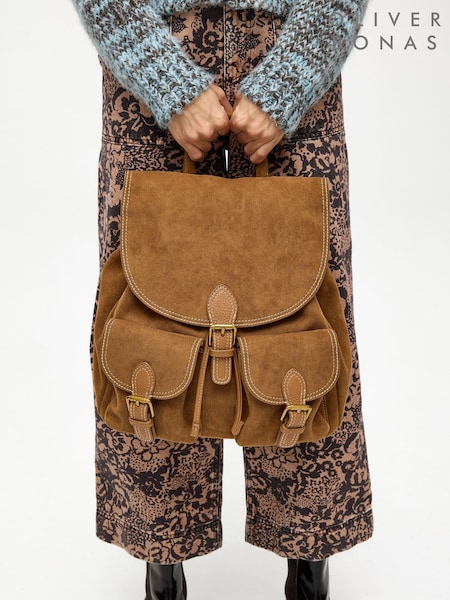 Σακίδιο πλάτης Oliver Bonas Kerry Camel Brown με αγκράφα από Συνθετικό σουέτ