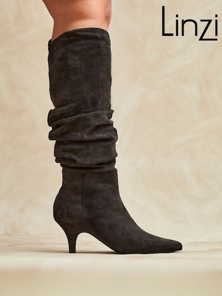 Γκρι - Μπότες Linzi Esteem Ruched με λεπτό χαμηλό τακούνι