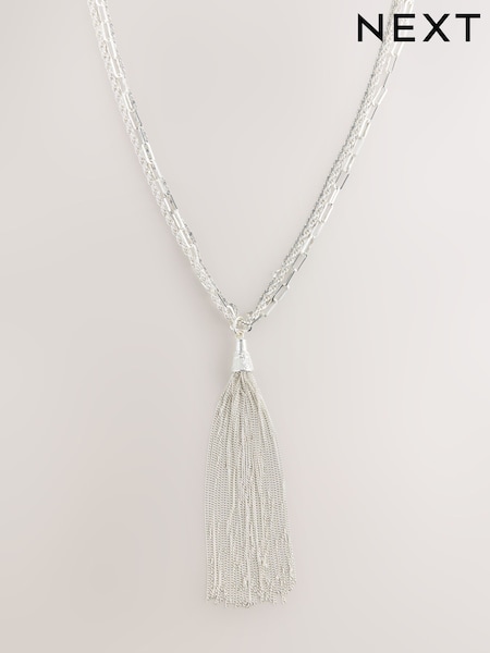 Με ασημένιο τόνο - 3 Κολιέ με κρεμαστό κόσμημα και φούντες σε στρώσεις