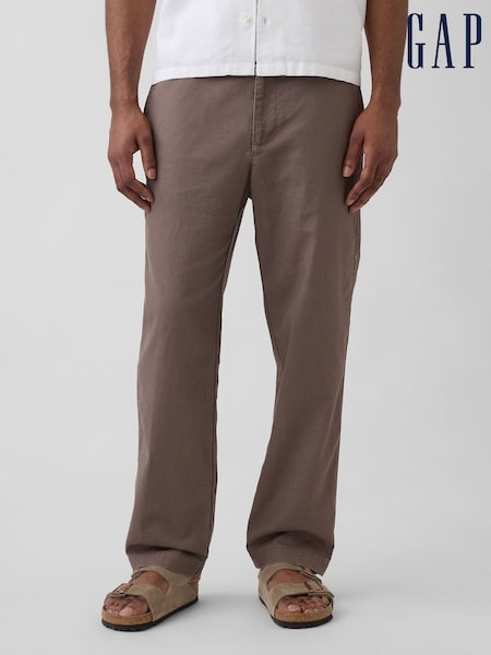 Gap Brown Linen-Cotton Relaxed Tapered Trousers