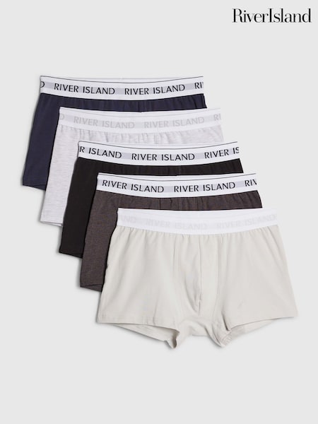River Island Grey Waistband Trunks 5 Pack