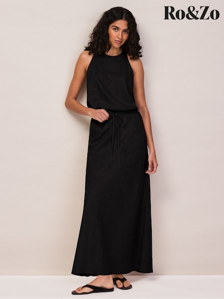 Ro&Zo Black Linen Blend Bias Skirt