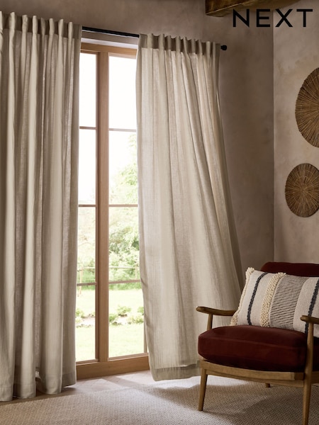 Natural N. Premium Collection 100% Linen Hidden Tab Top Lined Curtains