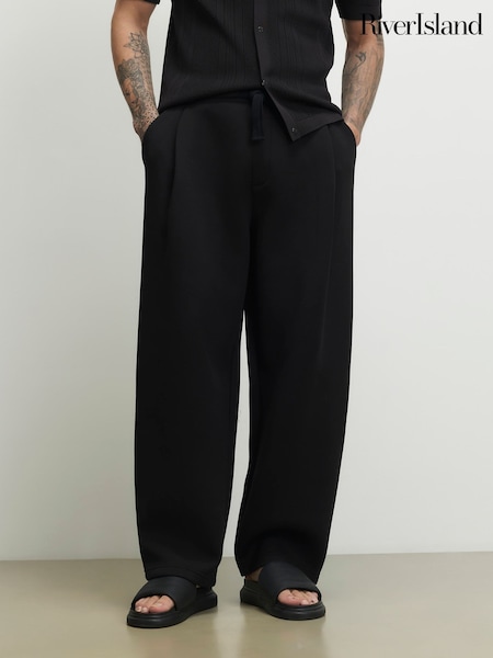 River Island Black Barrel Fit Scuba Pleated Joggers