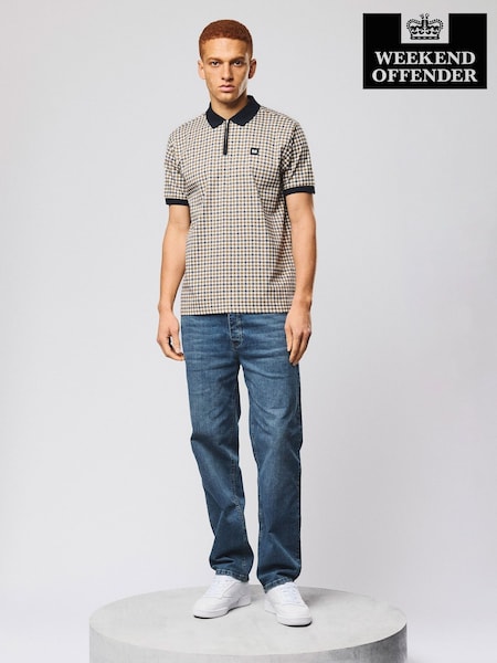 Weekend Offender Mid House Check Merane All Over Check Natural Polo Shirt