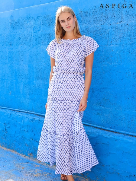Aspiga Blue Bea Printed Cotton Skirt