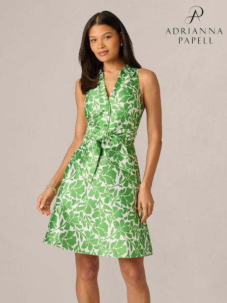 Adrianna Papell Green Tie Front Printed Short Dress