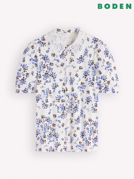 Boden Cream Nessa Broderie Collar Blouse