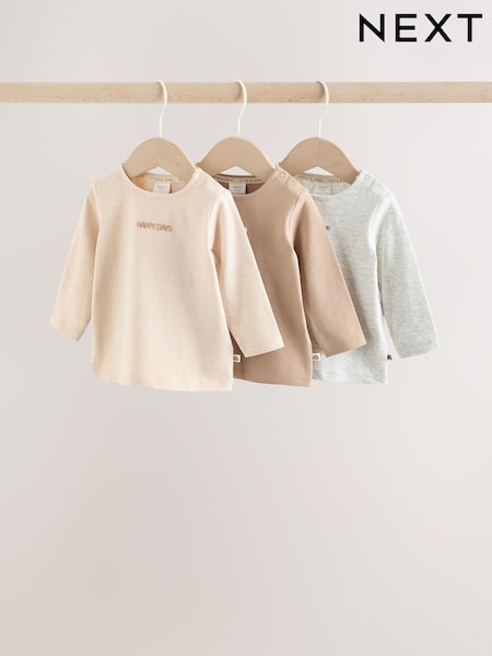大地色/灰色 - Long Sleeve Baby T-Shirts 3 Pack (0mths-2yrs)