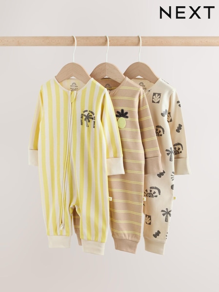 Multi Palm - 雙向拉鏈嬰童連身睡衣 3 件裝(0 個月-3 歲)