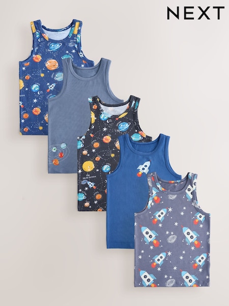 藍色/海軍藍太空印花 - 棉背心 5 件裝(1.5-8 歲)